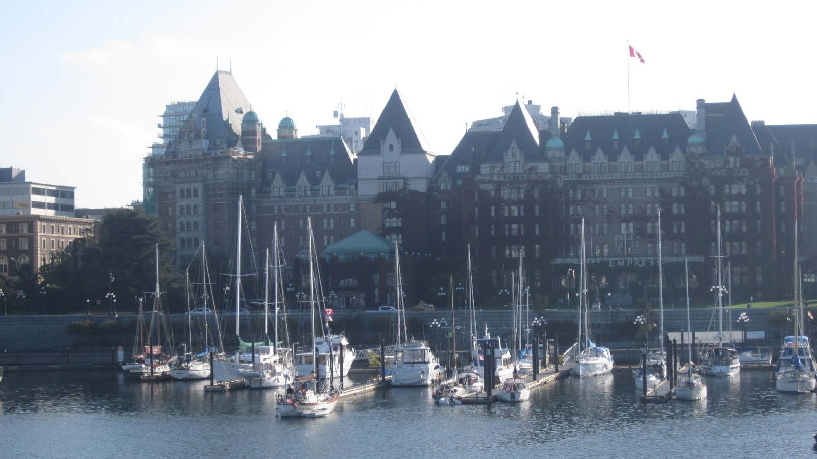 Looking out across the harbor from our hotel - towards the 'Empress Hotel' |